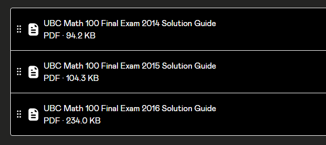 Solution guides to UBC Math 100 Final Exam 2016, 2015, and 2014